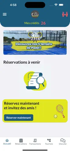L’application de réservation de terrains de padel permet de réserver facilement et en temps réel des courts, d’inviter des amis, d’ajouter des joueurs ou de gérer ses réservations depuis son téléphone. Grâce à des notifications push et à un chat intégré, elle facilite l’organisation de matchs avec des amis ou la communauté, offrant une expérience rapide, pratique et accessible pour tous les niveaux.
